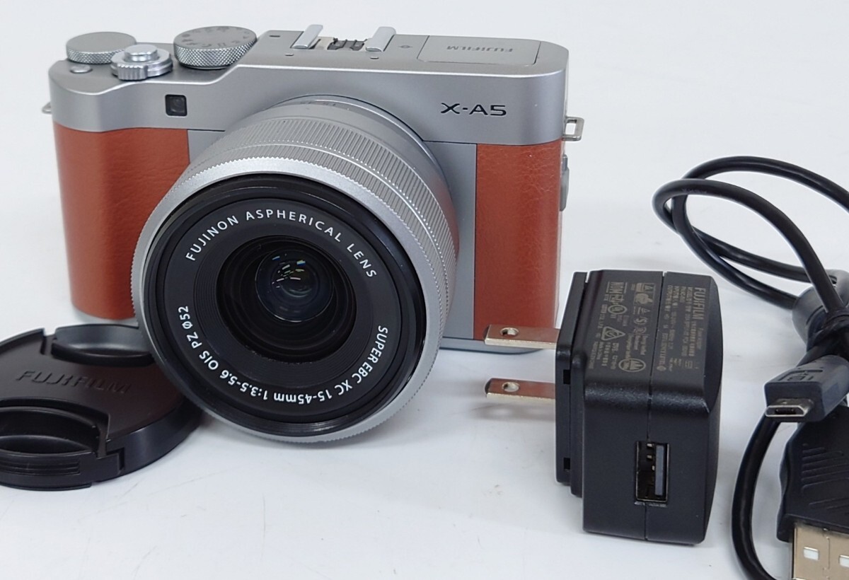 美品 FUJIFILM X-A5 ミラーレス一眼レフカメラ レンズ SUPER EBC XC 15-45mm 1:3.5-5.6 純正充電器付き 通電簡易動作確認済み