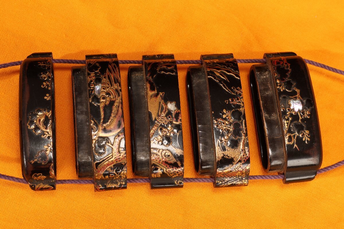 【珍品堂】1円から F38-J10 金時絵 鳳凰時絵 五段 印龍 希少品 細密彫刻 木箱 天然素材 古美術 骨董品 時代物