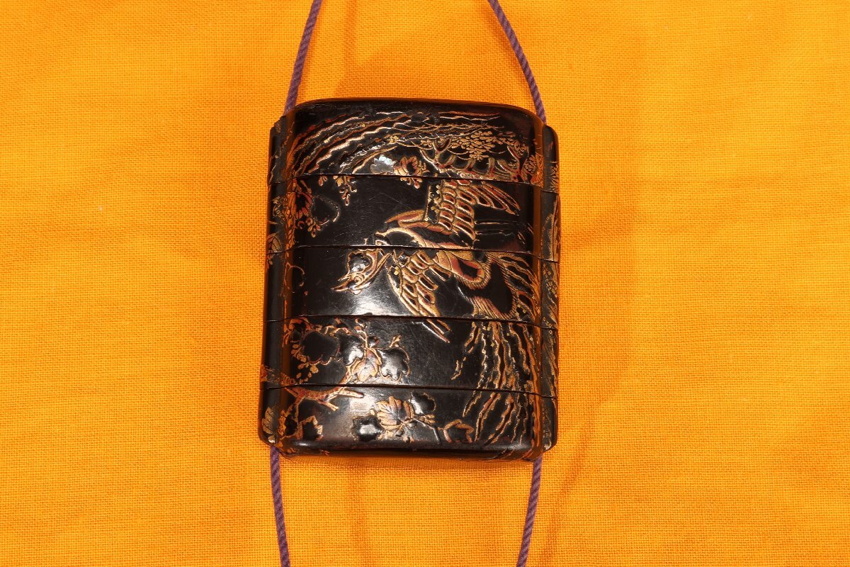 Product name: 【珍品堂】1円から F38-J10 金時絵 鳳凰時絵 五段 印龍 希少品 細密彫刻 木箱 天然素材 古美術 骨董品 時代物
