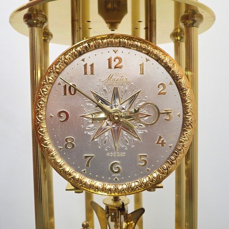 Product name: 【配送不可 引取限定】 日新時計 MASTER SPECIAL 400day ガラスドーム 置時計 41cm 機械式 手巻き 回転振子 動作品 アンティーク レトロ