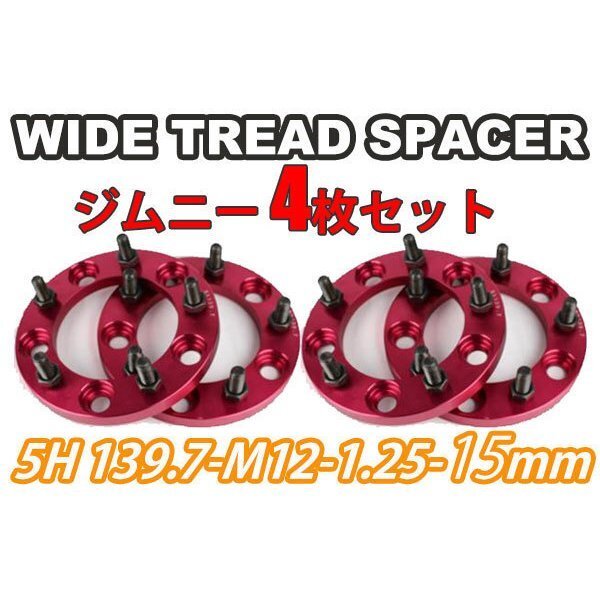 ジムニー ワイドトレッドスペーサー 4枚 PCD139.7 15mm 赤 JA11 JA22 JB23W JB33 JB43 SJ30 JB64W JB74W ワイトレ