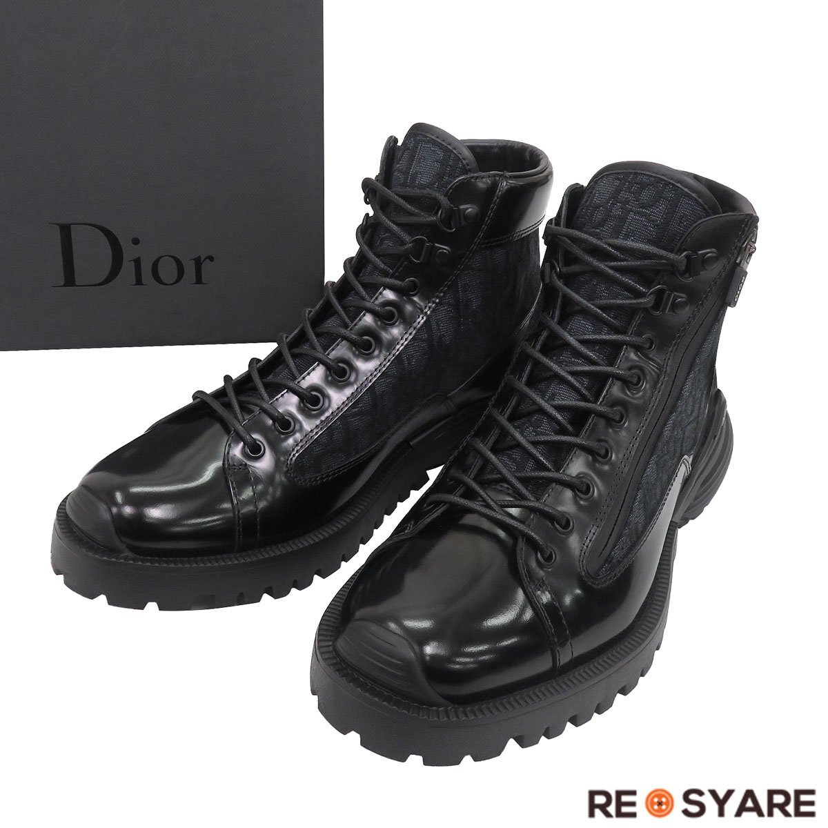 Product name: 【極美品 サイズ41】ディオール Dior オブリーク Combat カーフ レザー ブーツ ジャカード 公式18万 国内正規品 メンズ 黒 47414