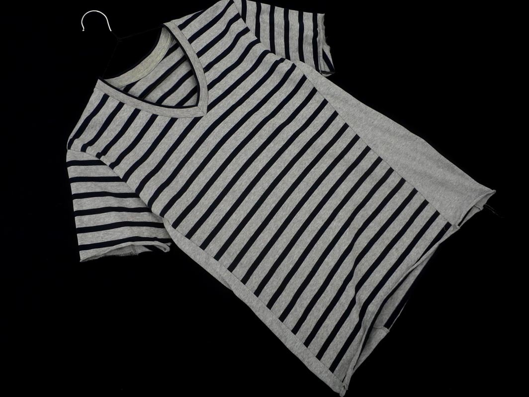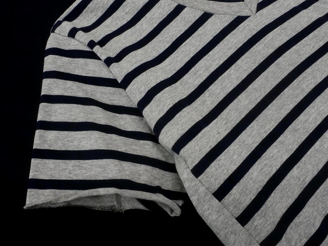 1 piu 1 uguale 3 ウノピゥウノウグァーレトレ Vネック ボーダー カットソー size?/グレーx紺 ■◆ ☆ fhb8 メンズ
