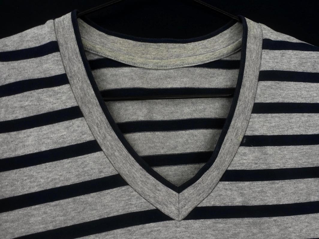 Product name: 1 piu 1 uguale 3 ウノピゥウノウグァーレトレ Vネック ボーダー カットソー size?/グレーx紺 ■◆ ☆ fhb8 メンズ