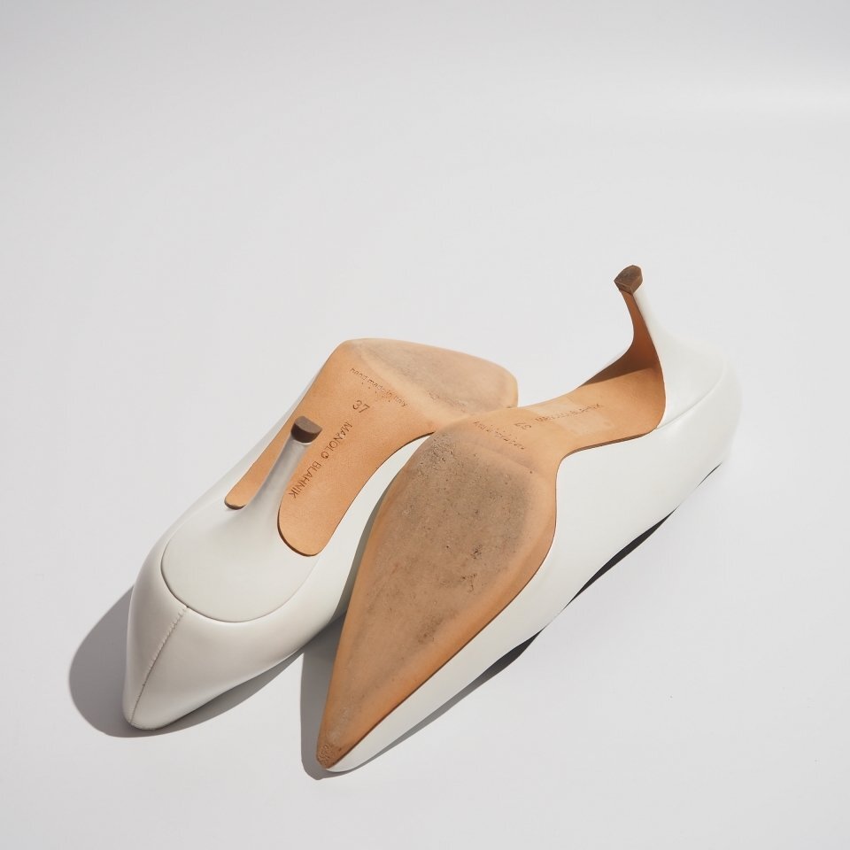 M0221P ▼MANOLO BLAHNIK マノロブラニク▼ KIETTA 70 ポインテッドトゥ パンプス ホワイト 37/24~24.5cm rb mks