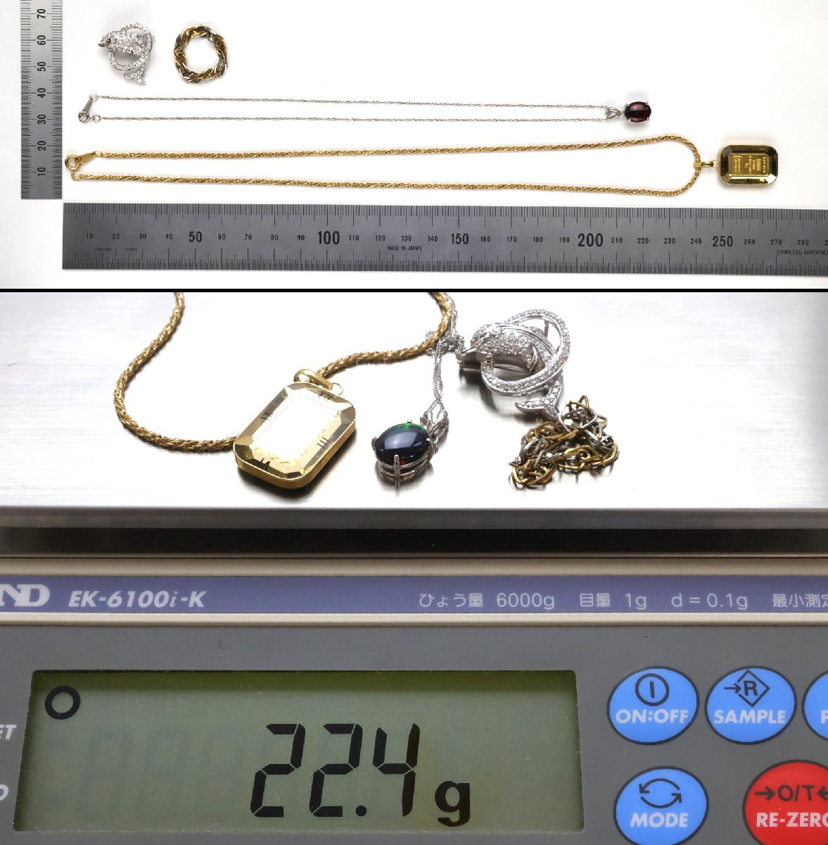 Product name: おたからや◆K18相当ジュエリー 4点《約22.4g》地金ペンダント(表面保護プレート付),メレダイヤブローチ【B-YA02068】