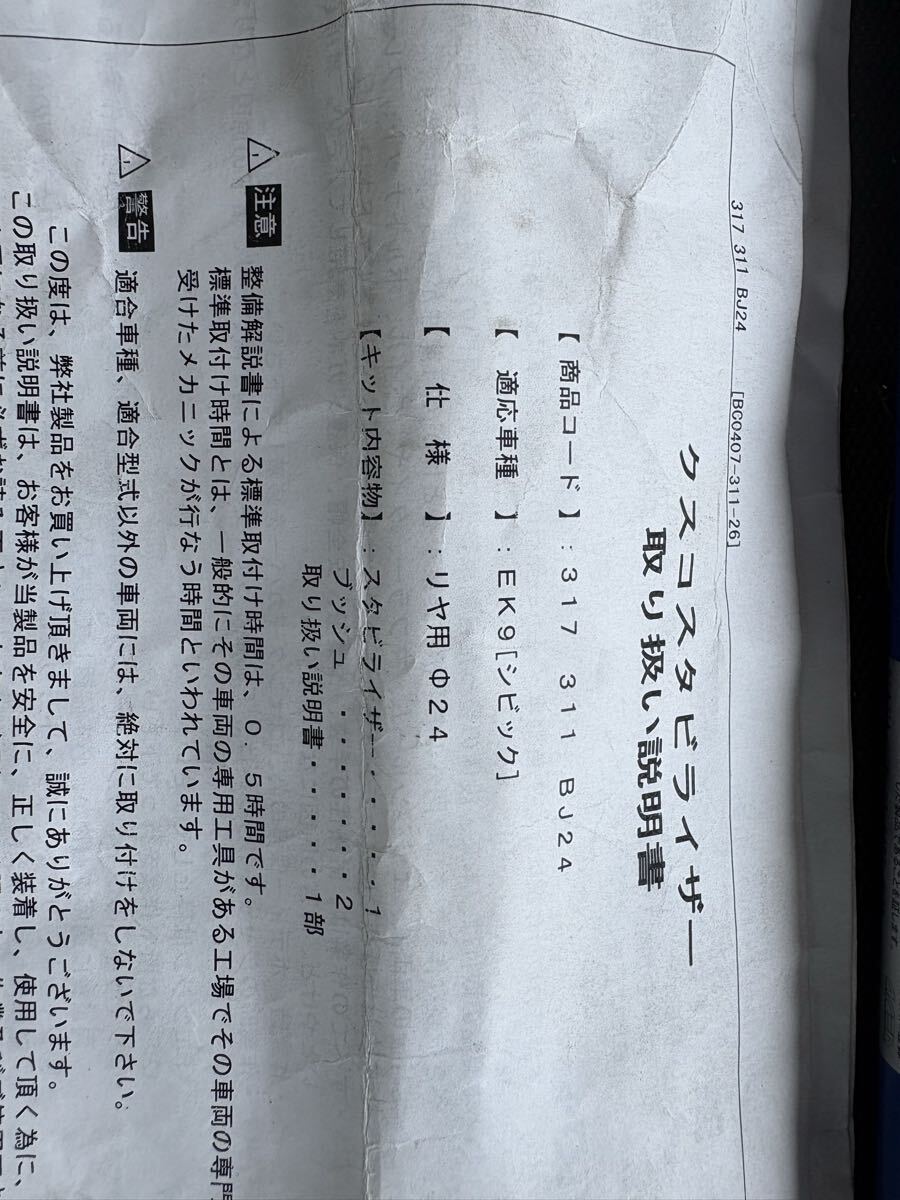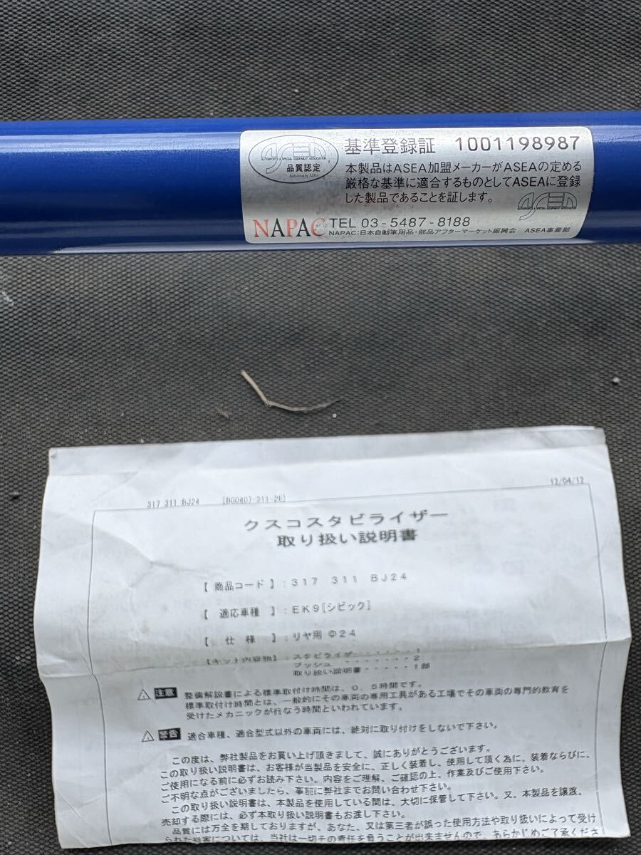 Product name: クスコ 調整式スタビライザー シビックEK9リヤ用 24ミリ