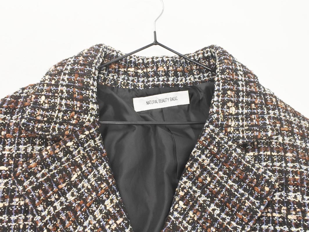 NATURAL BEAUTY BASIC ナチュラルビューティーベーシック ツイード ビッグ テーラード ジャケット sizeM/黒x茶 ☆ fhc9 レディース