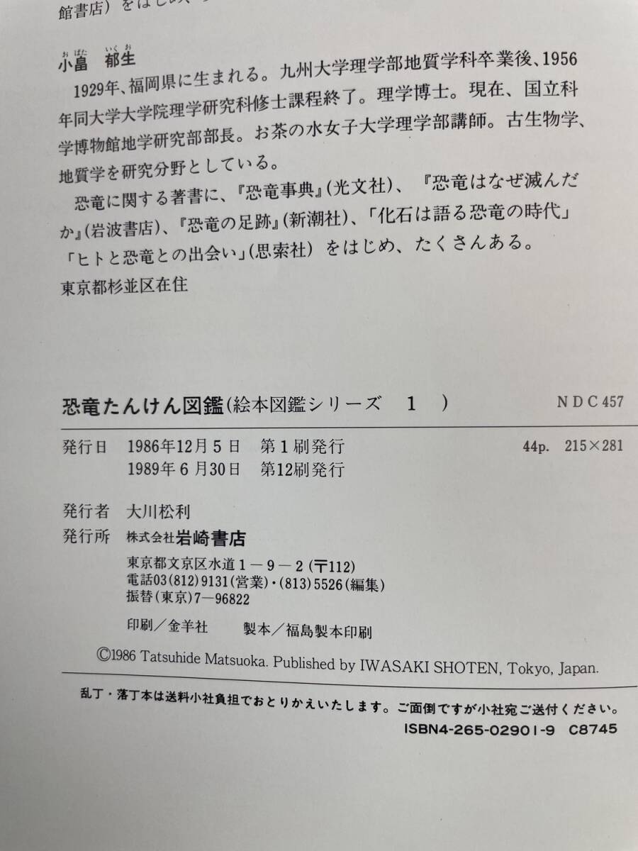 恐竜たんけん図鑑  絵本図鑑シリーズ 松岡 達英/著 小畠郁生 岩崎書店 昭和64年 1989年発行破れがあります。