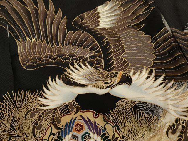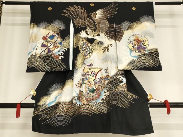 Product name: 平和屋着物[]お宮参り 男の子 祝着 産着 初着 のしめ 鷹 宝船文 暈し染め 黒地 金彩 逸品 AAAU5273ja
