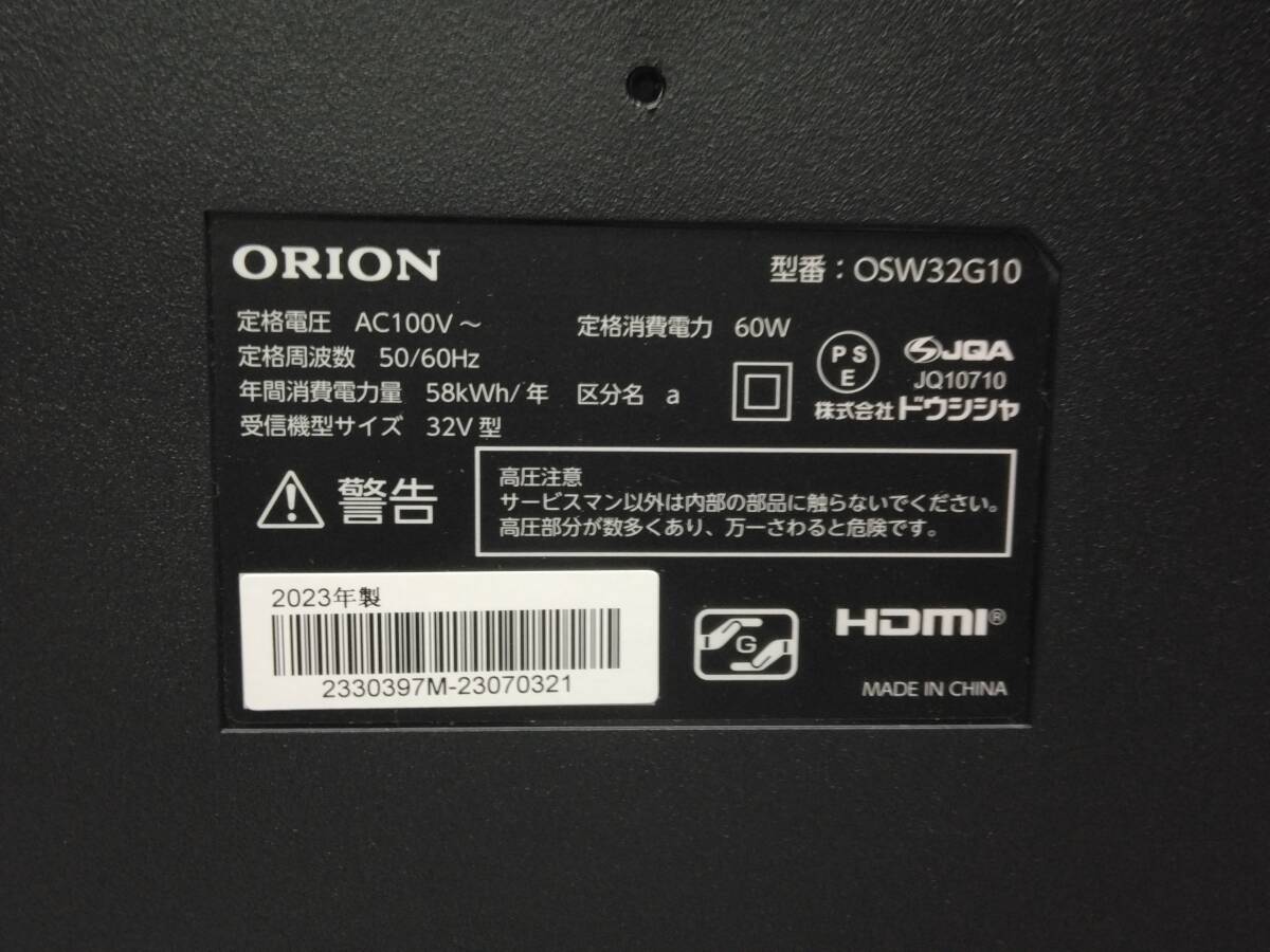 Product name: ☆2023年製 ORION 32V型 ハイビジョン スマート 液晶テレビ OSW32G10 スタンドなし 大阪発 引取歓迎!家財便Aランク