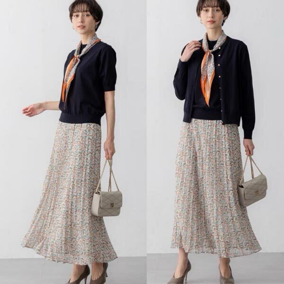 Product name: 23区【洗える】シアーヘリンボーンプリント プリーツ スカート 40・オレンジ系Lサイズ・新品