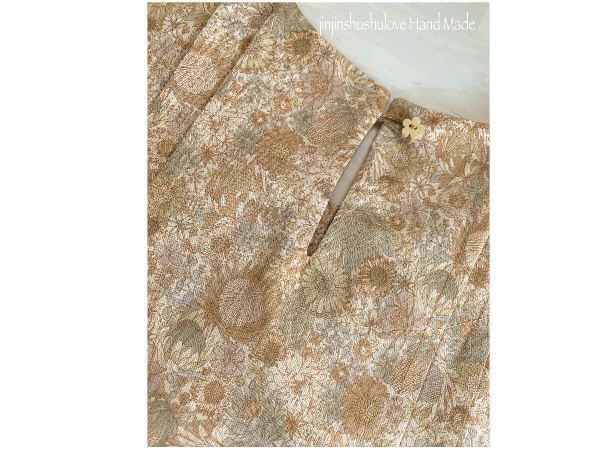 ベージュにフラワーガーデン柄のコットンスケア生地でタックOPを作りました♪