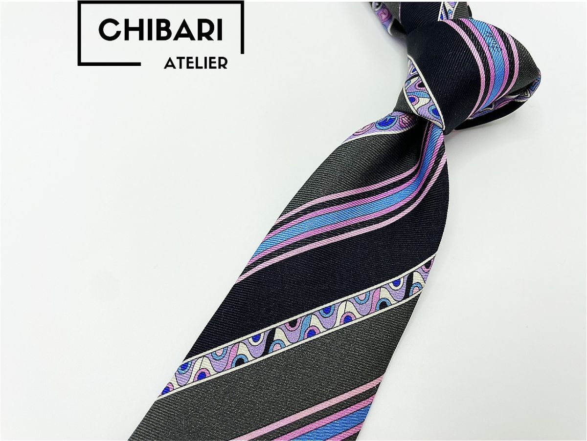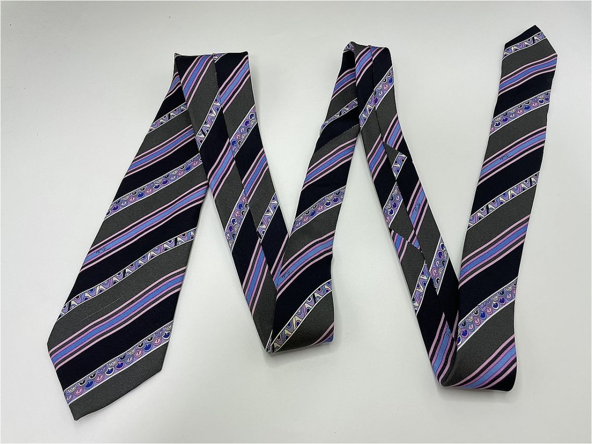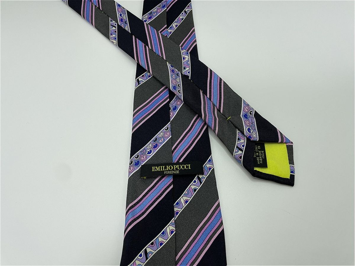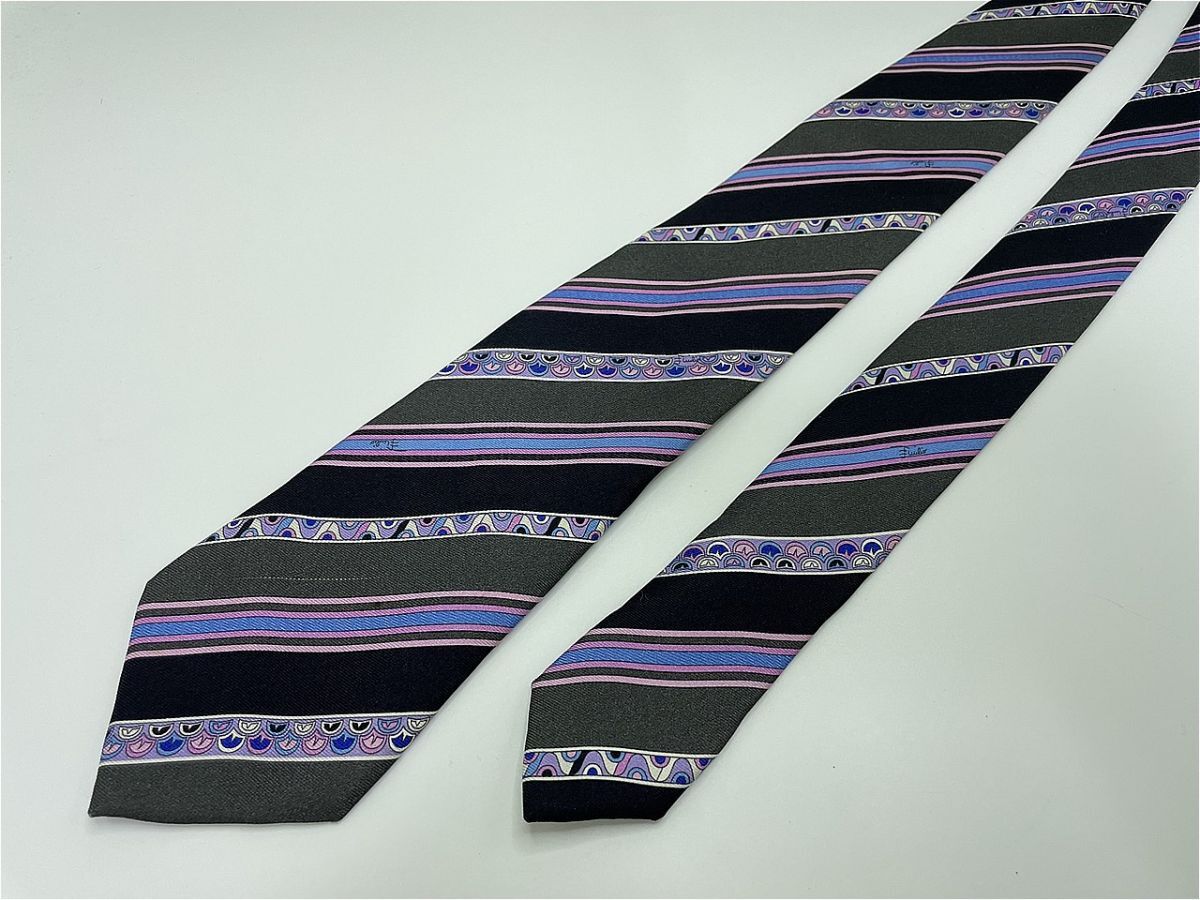 Product name: 【超美品】EMILIO PUCCI エミリオプッチ ロゴ&レジメンタル柄 ネクタイ 3本以上 送料無料 メンズ ブラックグレイ 0804253