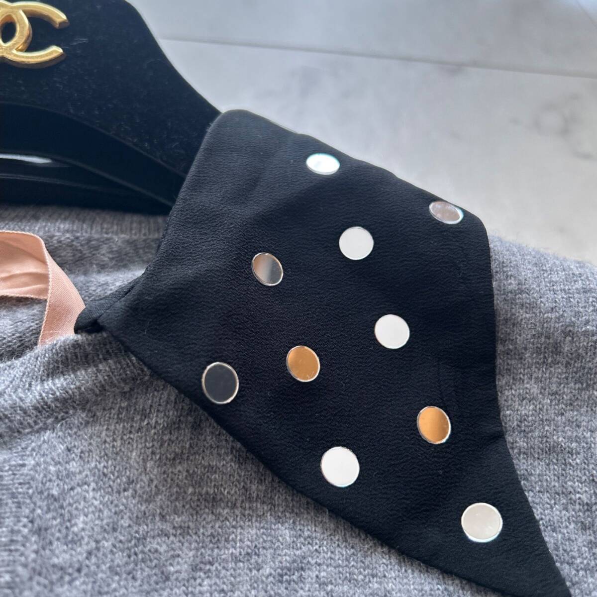 襟にはミラーのような飾りがついています。襟は取り外し可能です。