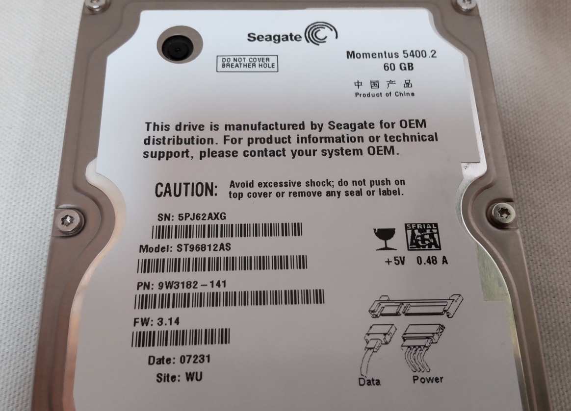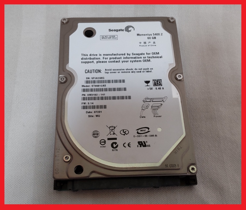 送料無料!美品 FW3.14 動作良好消毒済み●Seagateシーゲイト 2.5インチ 60GB●PS3 CECHA00 60GB 取出品③