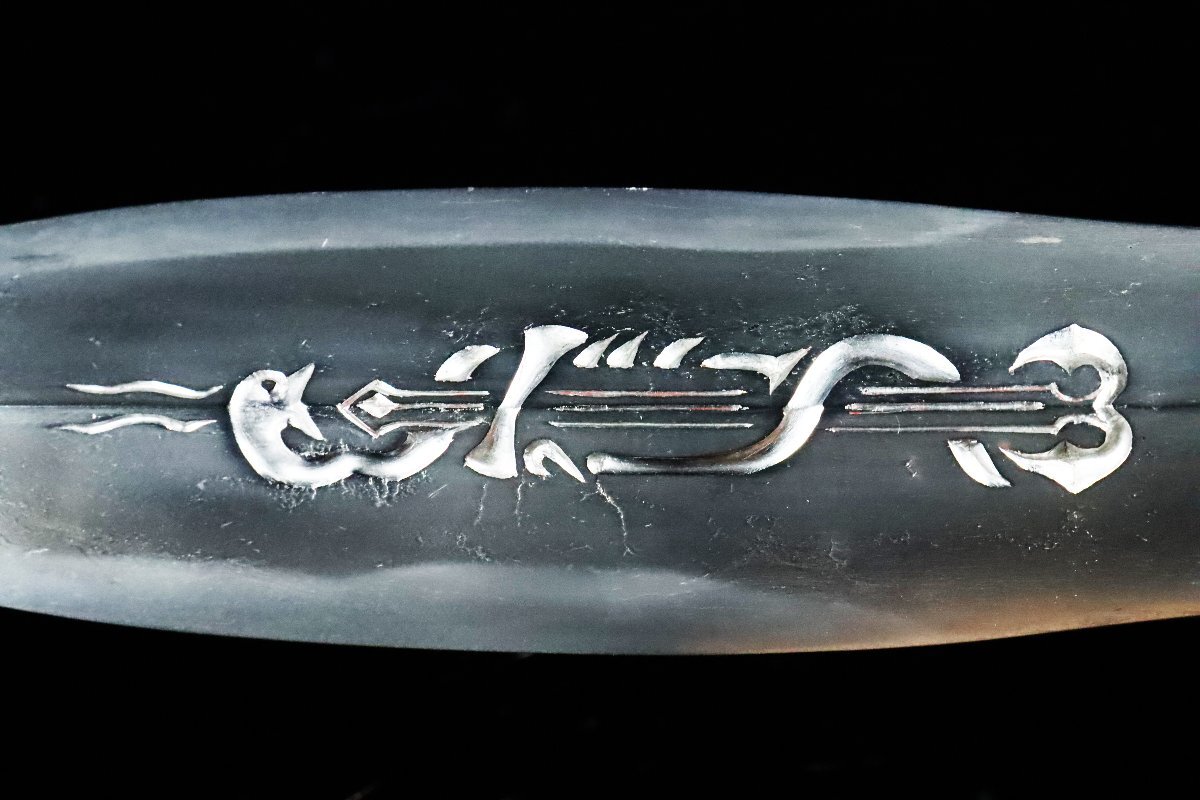 【ASAHI】 珍品!超太い袋槍 刀身に龍剣彫刻 乱れ刃紋 刃長18.3cm 元幅3.0cm 塗鞘入[7995oe]