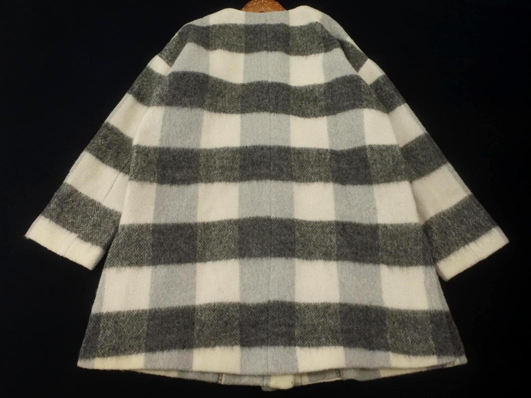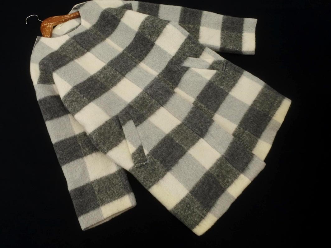 Product name: NATURAL BEAUTY BASIC ナチュラルビューティーベーシック ウール混 チェック ノーカラー コート sizeM/グレー ◇■ ☆ fja8 レディース
