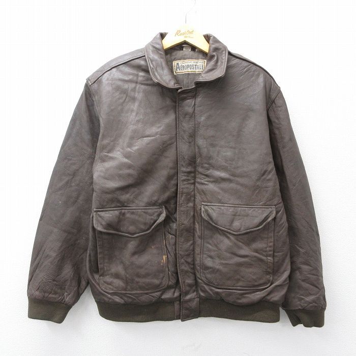 Product name: XL/古着 エアロポステール 長袖 レザー ジャケット メンズ 00s 濃茶 ブラウン 25oct06 中古 アウター 革ジャン 皮ジャン