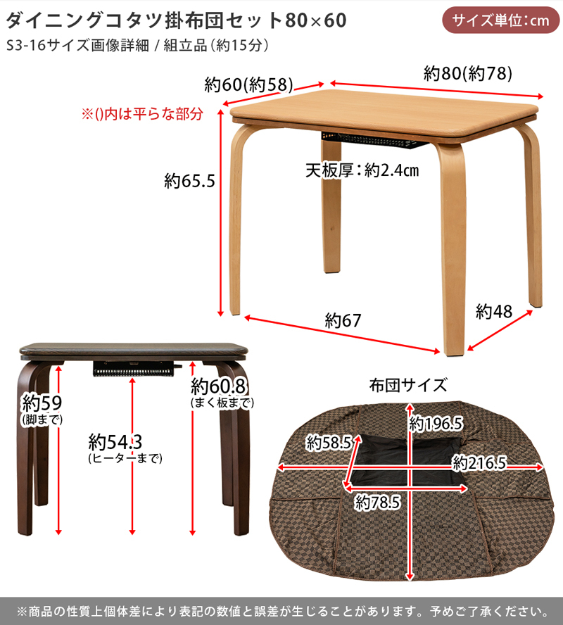 サイズ こたつ(W)幅80cm×(D)奥行き60cm×(H)高さ65.5cm