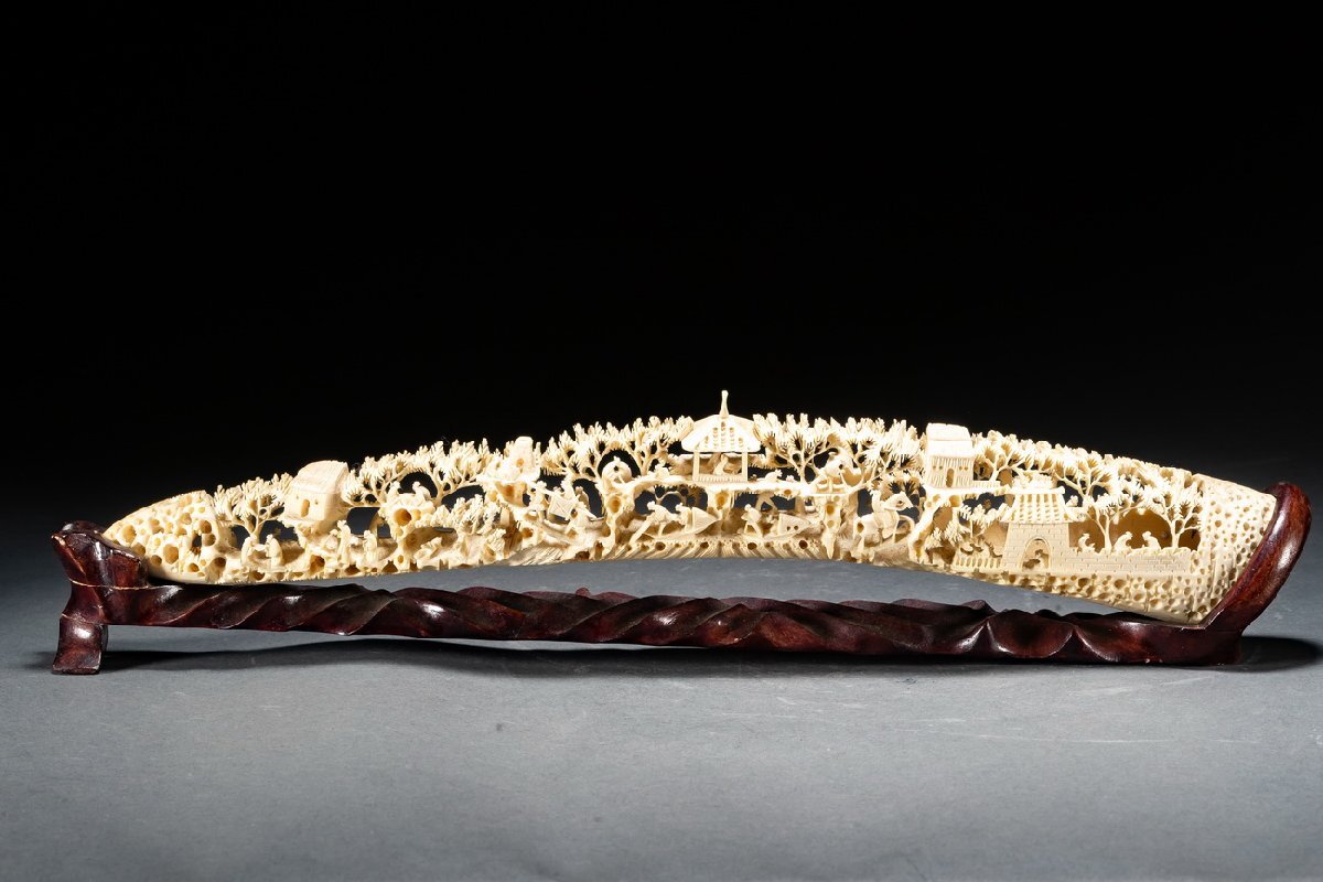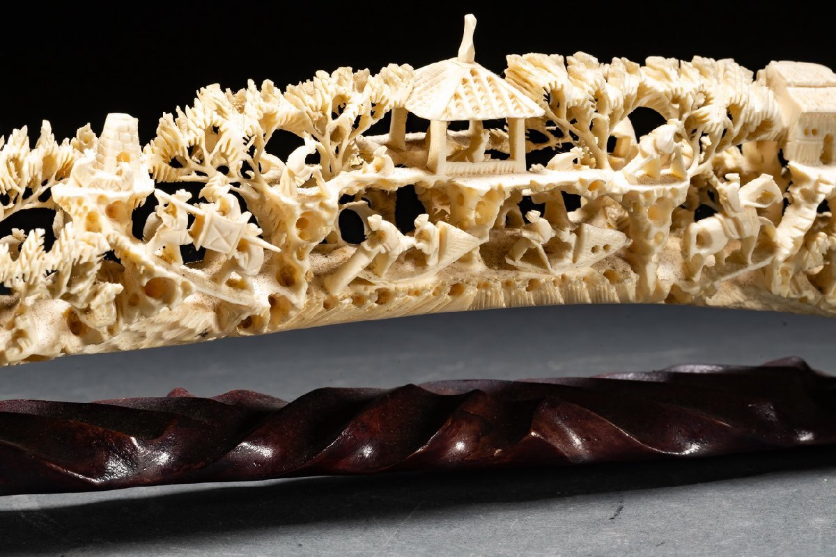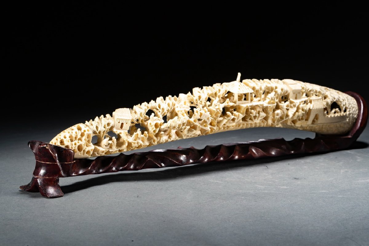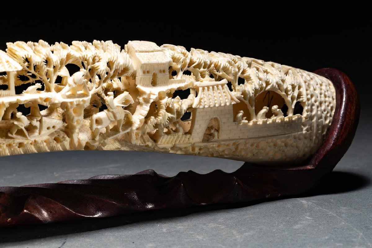 Product name: 【雲錦】某有名オークション購入 天然材 透かし彫り 山水楼閣紋彫り物 特殊白材 高級美術品 時代コレクションZ-138