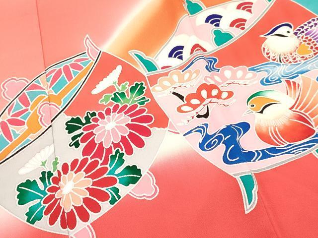 Product name: 平和屋着物[]お宮参り 女の子 祝着 産着 初着 のしめ 糸車 鴛鴦花絵皿文 暈し染め 逸品 DAAW2858ma