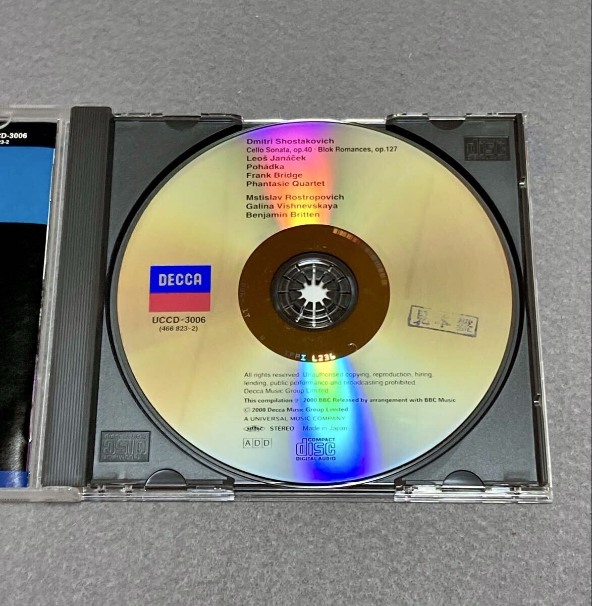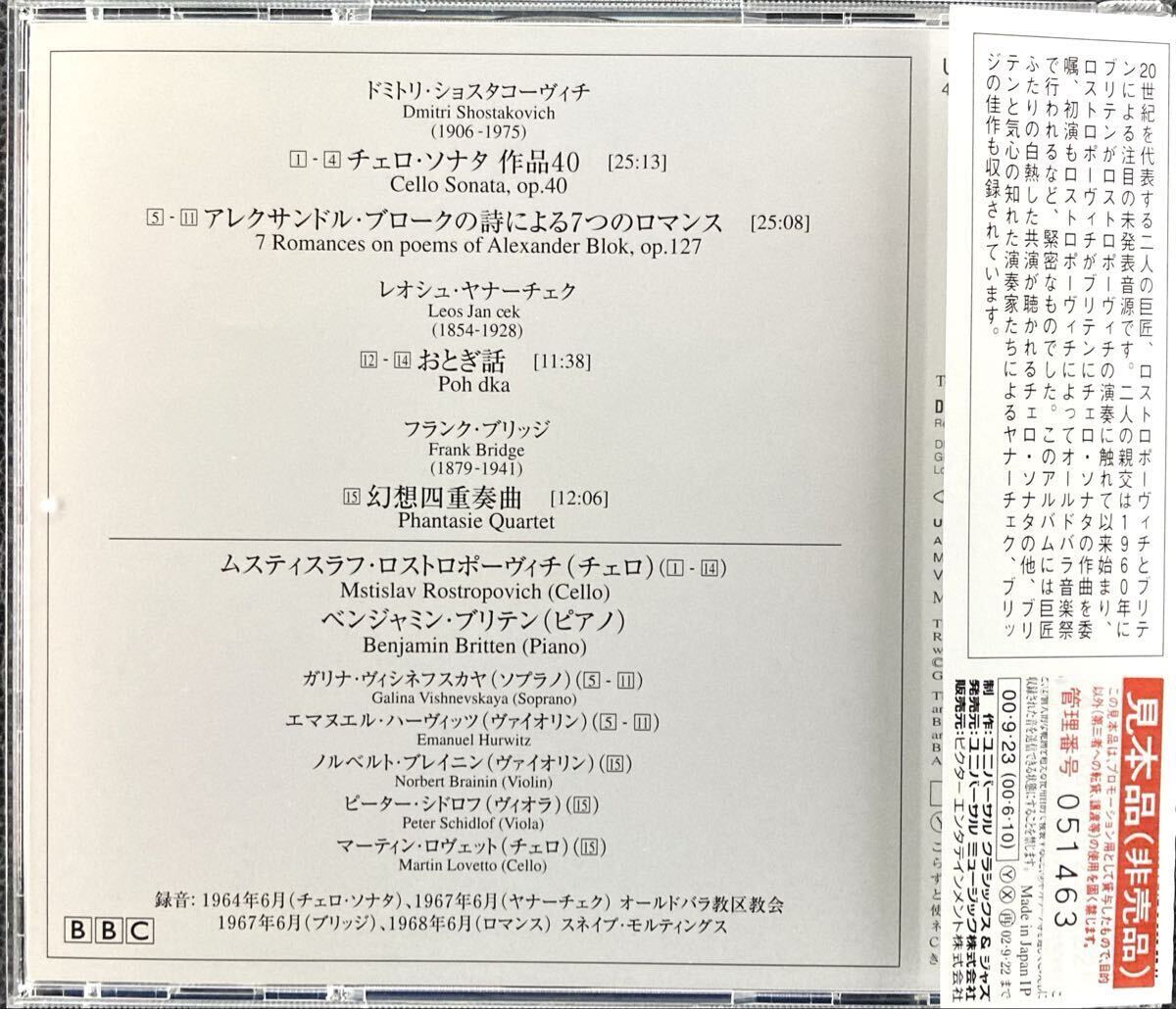 Product name: CD/ ショスタコーヴィチ:チェロ・ソナタ / ロストロポーヴィチ(Vc)、ブリテン(P) / サンプル盤