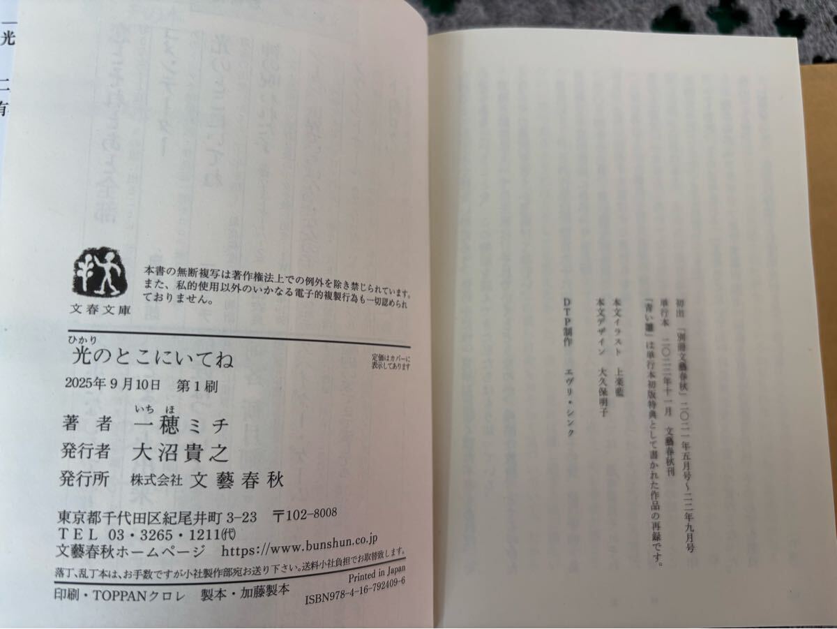 Product name: 「光のとこにいてね」 一穂ミチ著 2025年9月10日第1刷 一読のみ 文春文庫