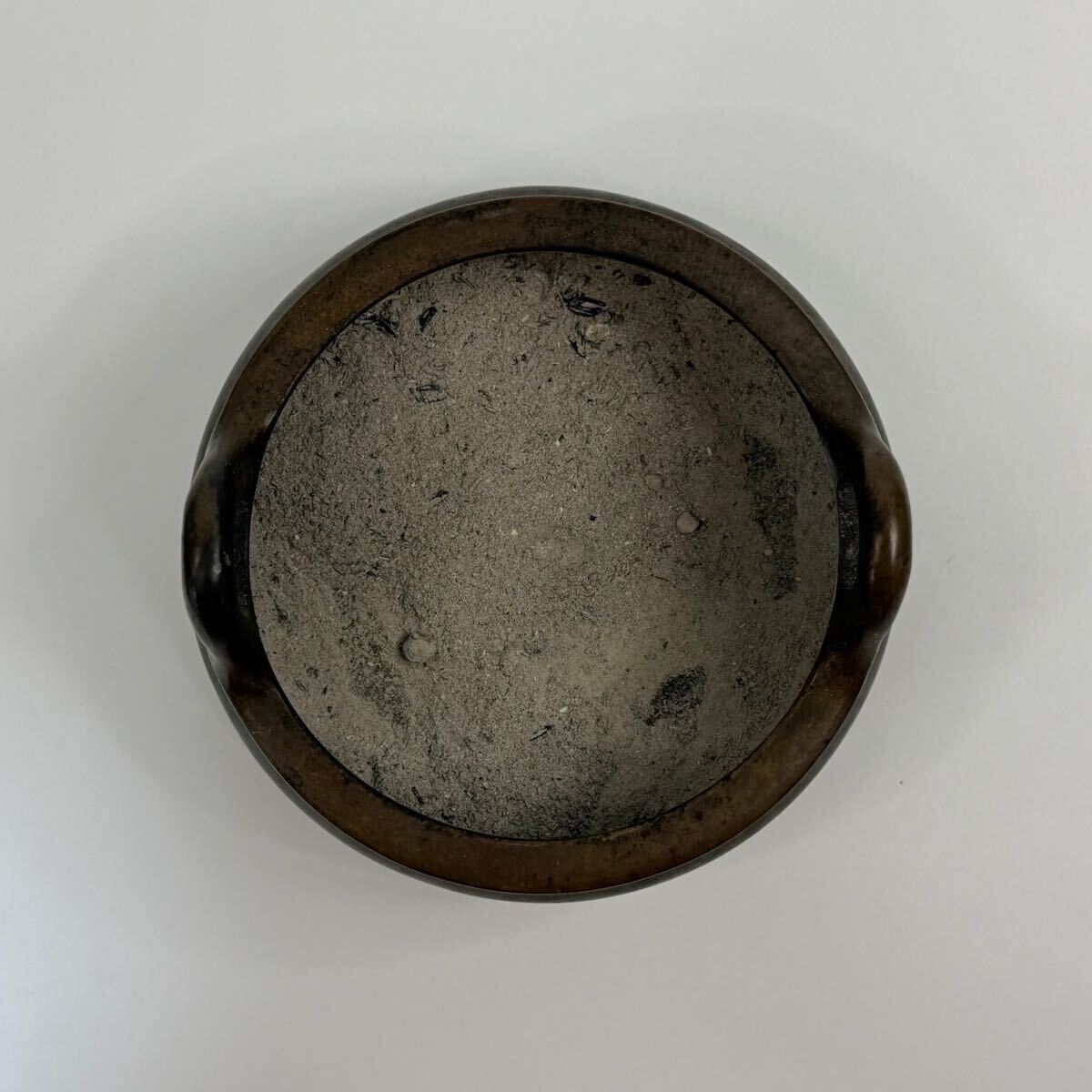 G6-中国古美術 時代物 古銅 銅製 香炉 香道具 三足炉 蓋付 台座付 共箱付 在銘 唐物 中国古玩 骨董品 幅13.9cm 高さ9.2cm