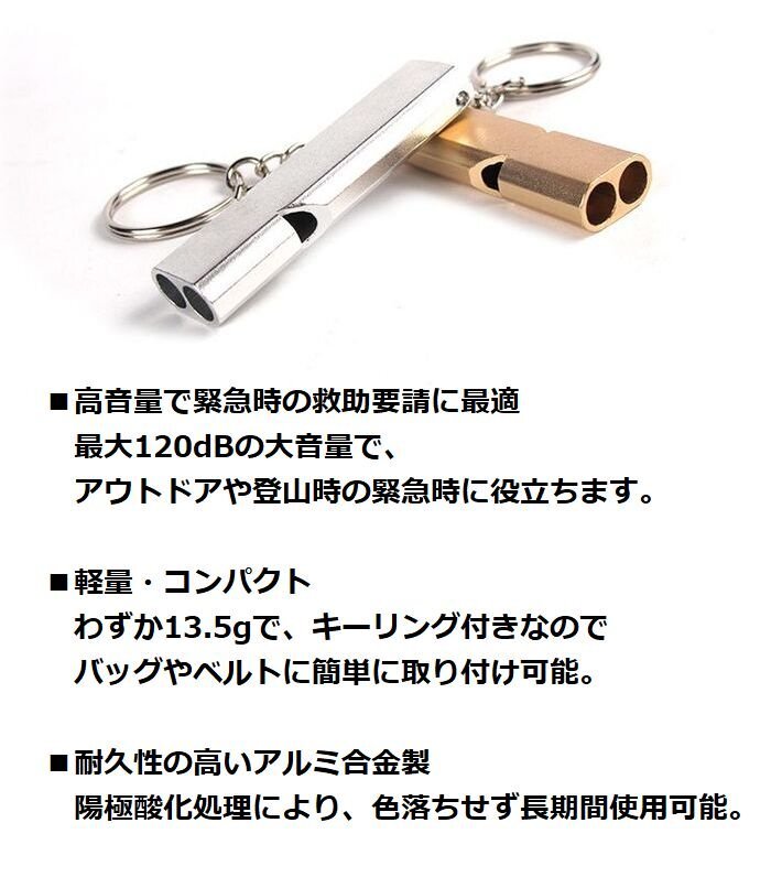Product name: キーホルダー 防犯ホイッスル 防災ホイッスル 口笛 防犯グッズ 護身用 大音量 子ども 7986789 ゴールド×シルバー(2個セット) 新品