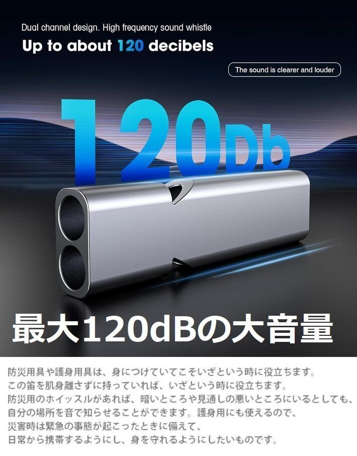 高音量で緊急時の救助要請に最適:最大120dBの大音量で、アウトドアや登山時の緊急時に役立ちます。