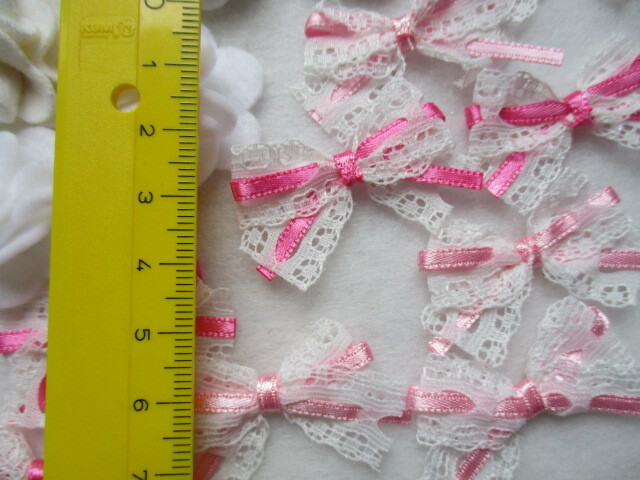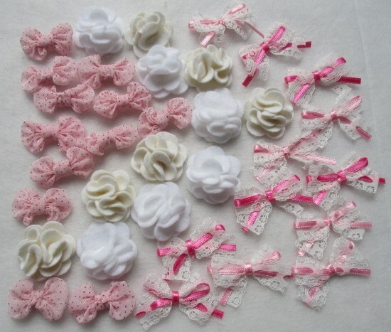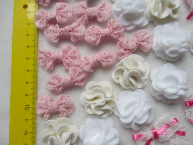 Product name: R69◆ホワイト&ライトPINK◆フエルト花 12個・リボン型レース 12個・タイribbon型モチーフ 12個