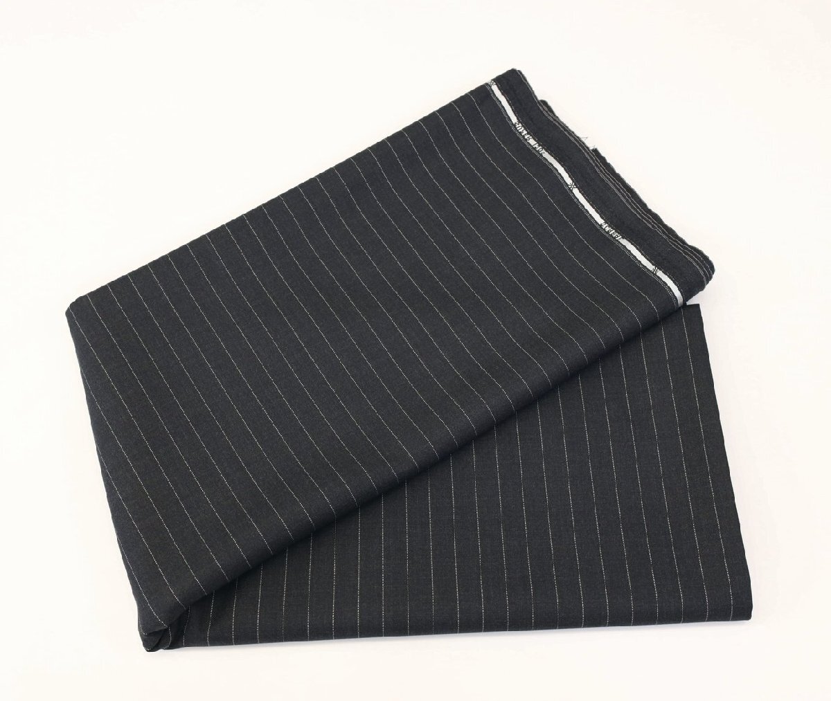 生地の色はチャコールグレーです。  生地のデザインは、定番のペンシルストライプになります。