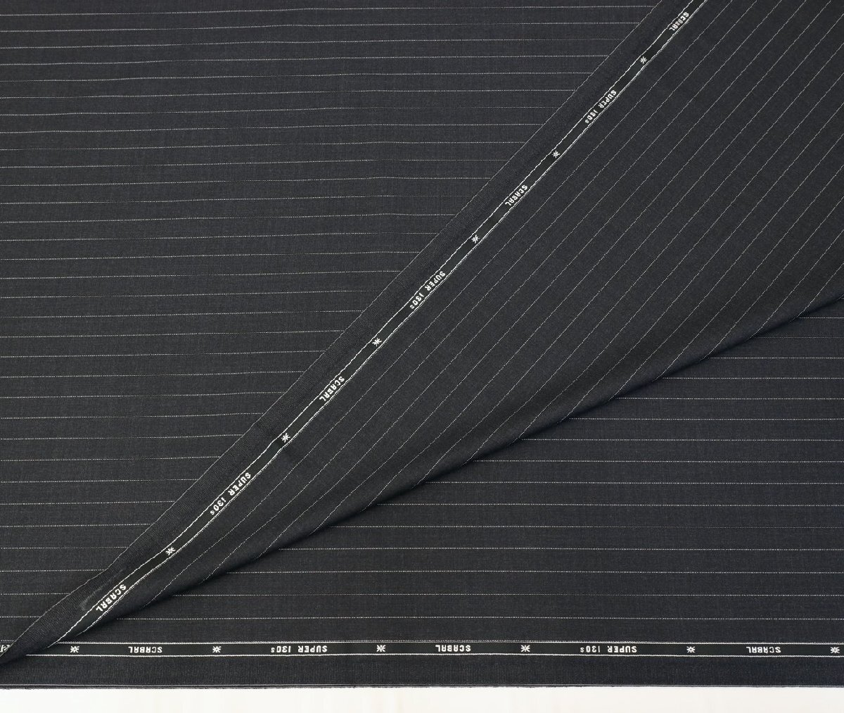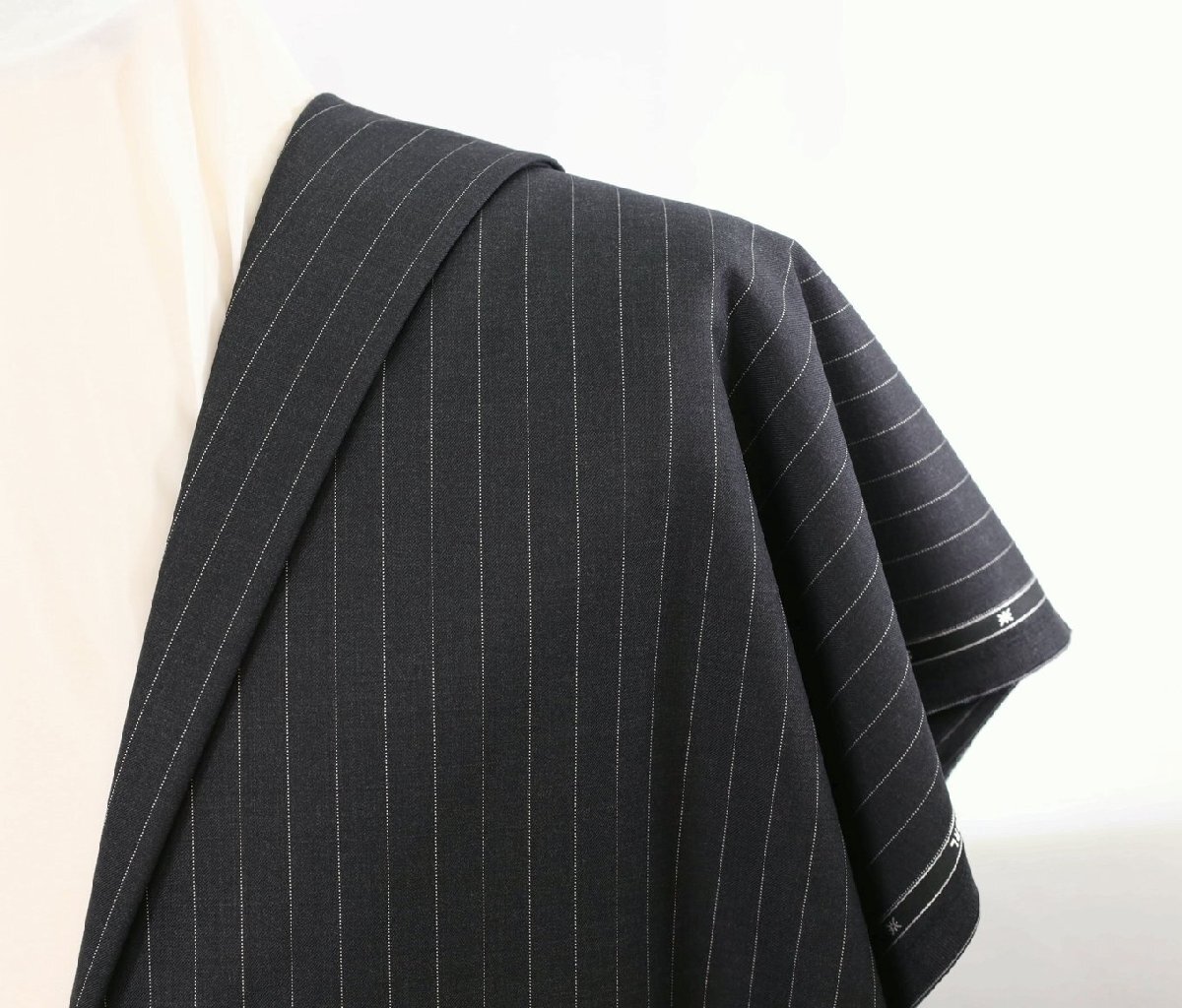 ★スキャバル社「イートン」極上super130・艶々のチャコールグレーに定番ペンシルストライプ・イタリア製・生地価格30万円・長さ3.3m