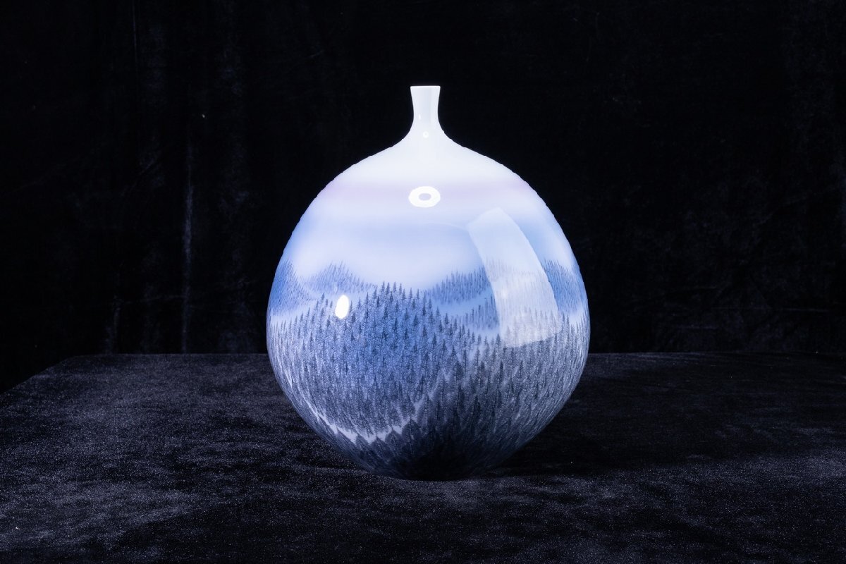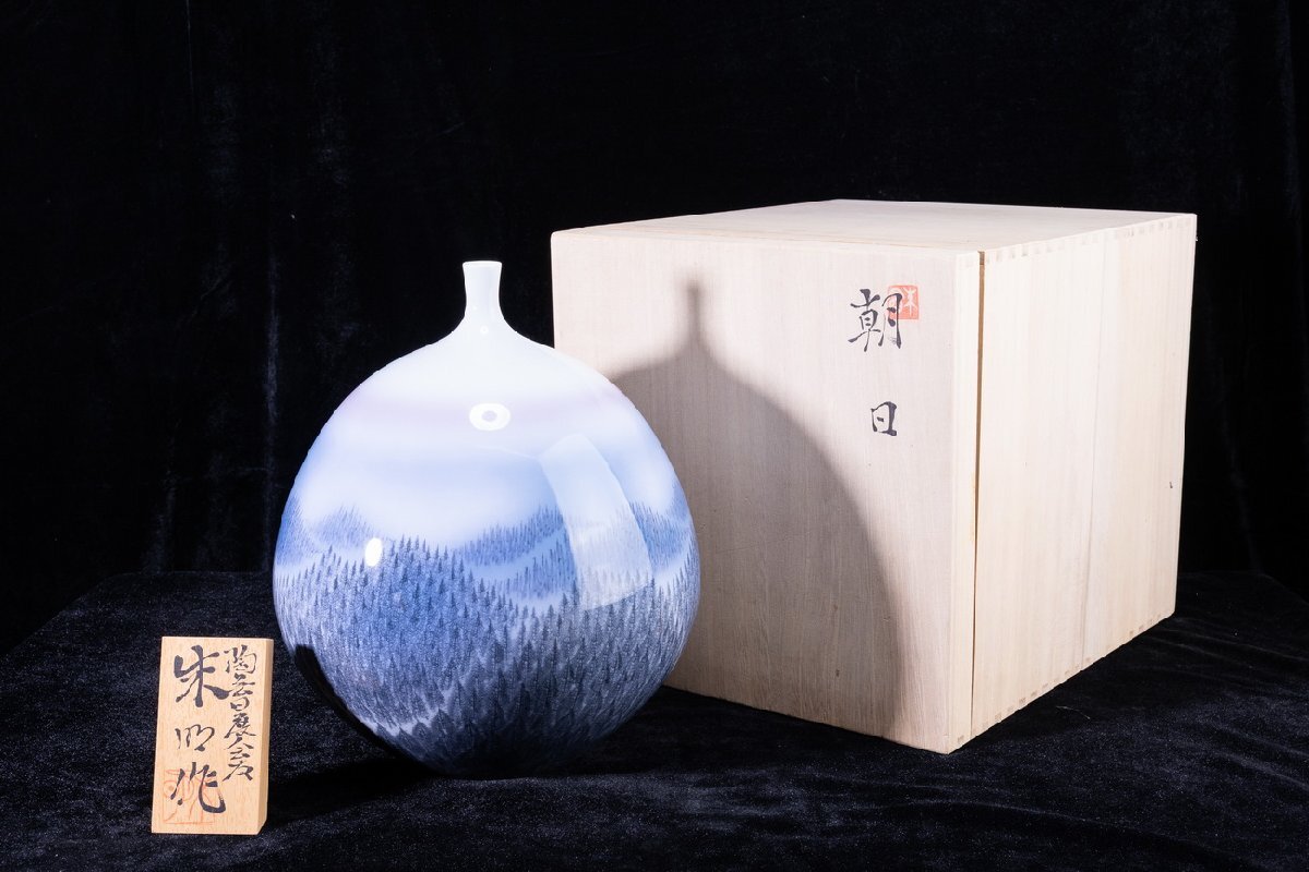 Product name: 【珍品堂】1円から M15-T05 日展作家 藤井朱明作 朝日 花瓶 共箱 木箱 花器 名人 花入 置物 飾壺 壺 時代物 古美術