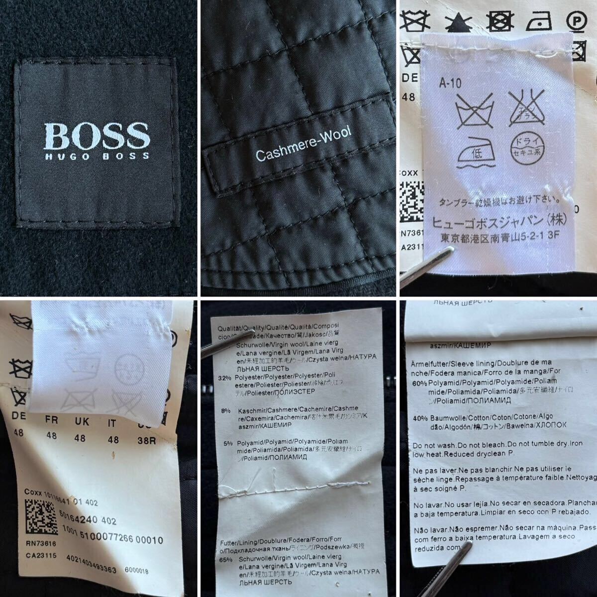Product name: 極美品/48(L)●カシミヤ!! HUGO BOSS ヒューゴボス スタンドカラー レイヤードコート チェスター ジャケット 襟裏ロゴ金具 ウール ブラック