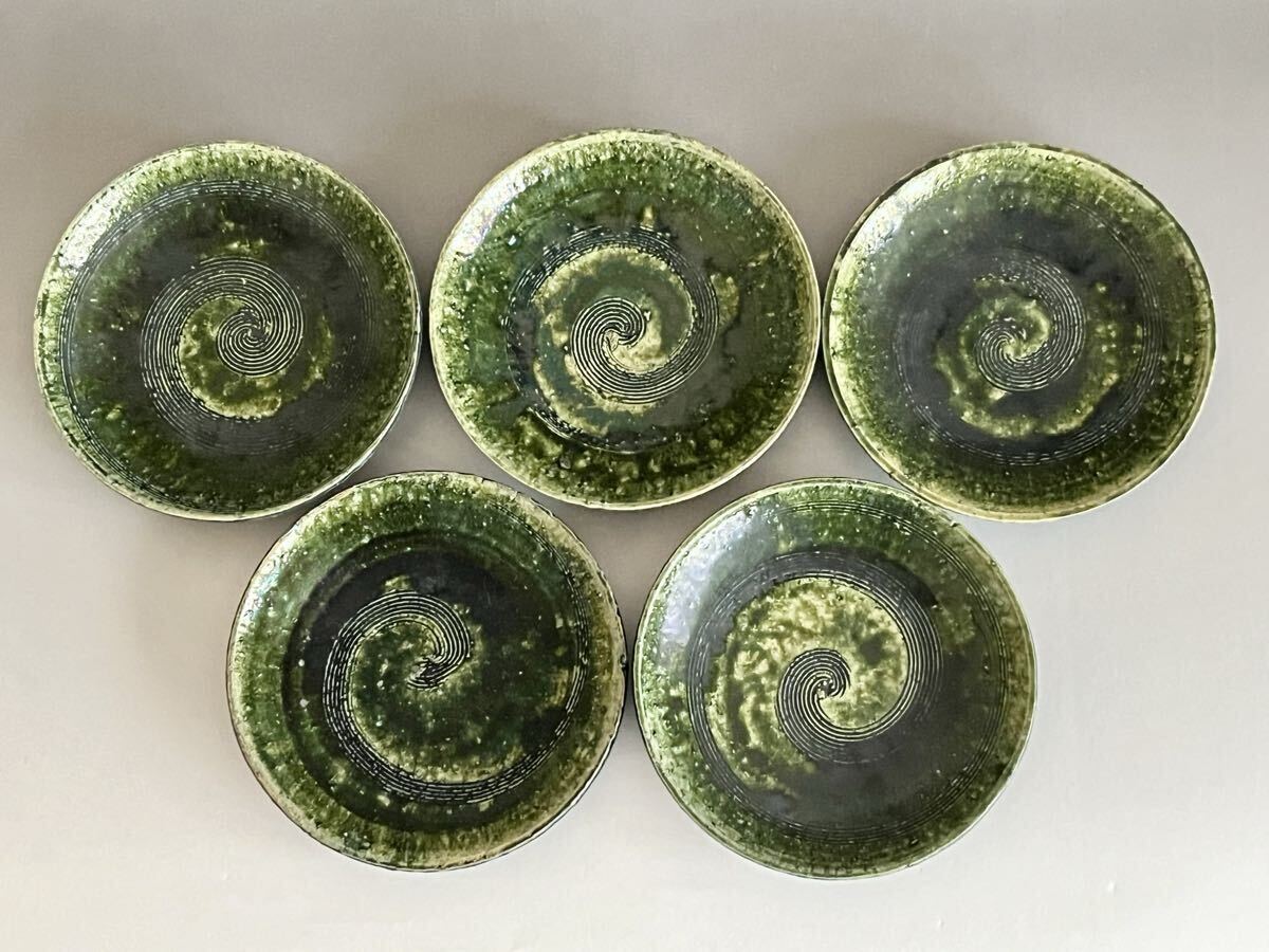 ★ 鈴木五郎 織部 皿 五客 五枚 銘々皿 丸皿 懐石 会席 和食器
