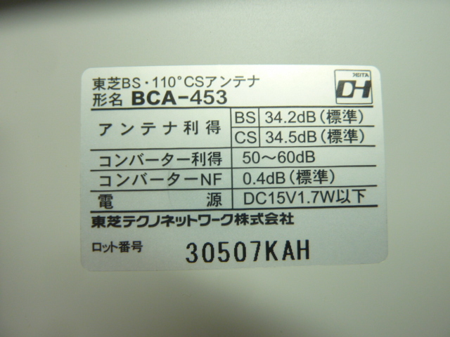 Product name: r414 展示品 欠品有 TOSHIBA 東芝 BCA-453 BS・110CSデジタルハイビジョン アンテナ セット BS CS デジタル TV 設備