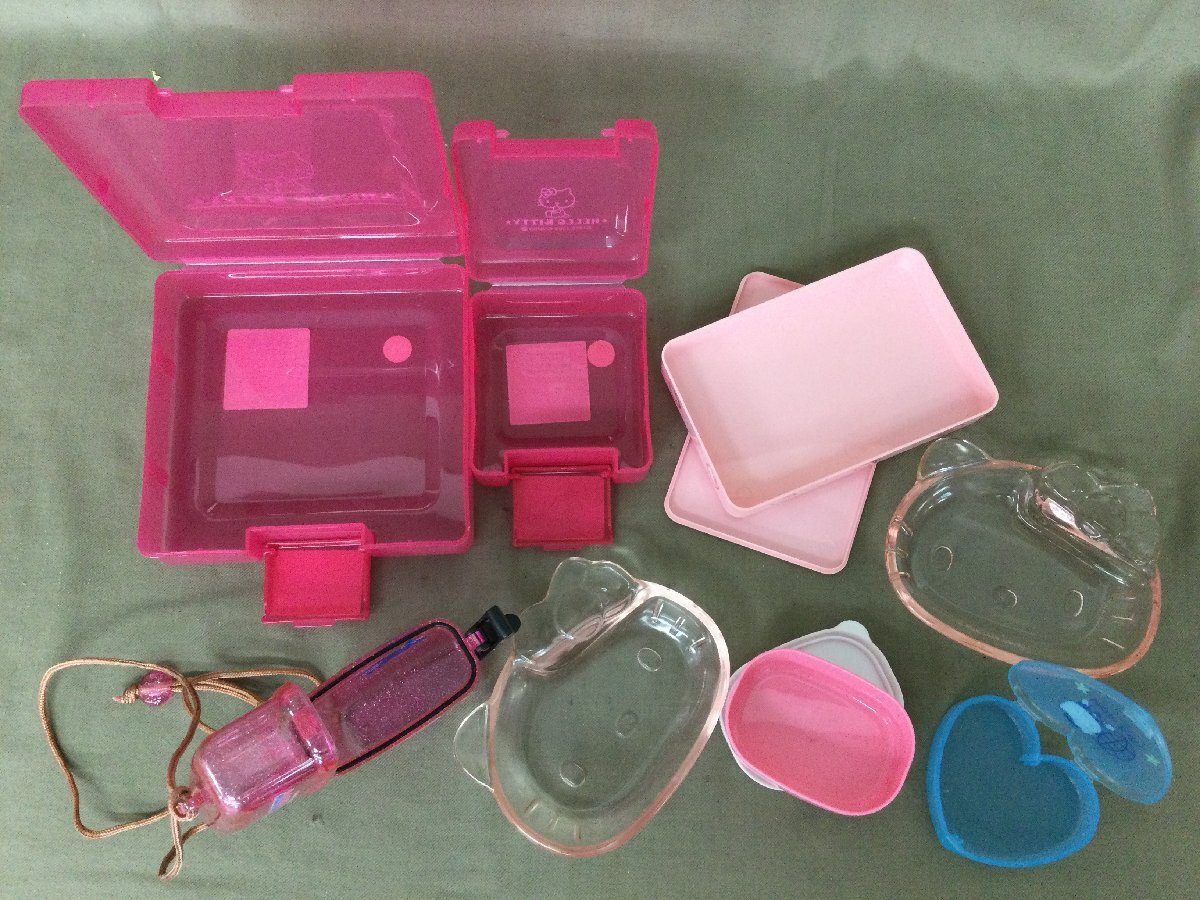 ★05―219★ハローキティグッズ 18点まとめ レトロ缶 小物入れ/トランクケース/ガラス皿/弁当箱/道具箱/ゴミ箱/三段ケースなど[140]