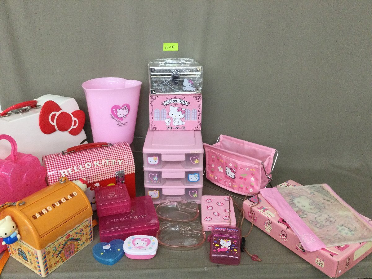 Product name: ★05―219★ハローキティグッズ 18点まとめ レトロ缶 小物入れ/トランクケース/ガラス皿/弁当箱/道具箱/ゴミ箱/三段ケースなど[140]