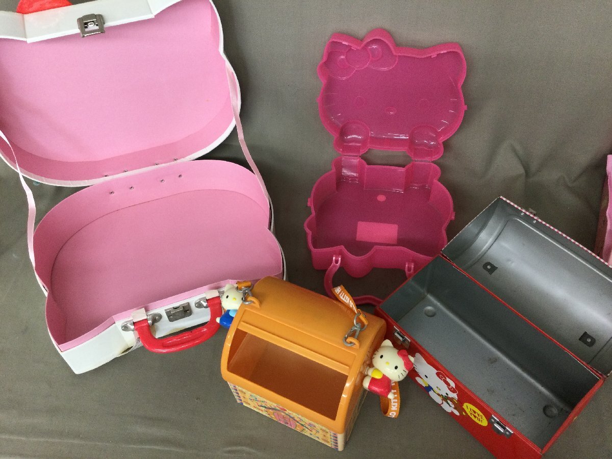 ●★05―219★ハローキティグッズ 18点まとめ レトロ缶 小物入れ/トランクケース/ガラス皿/弁当箱/道具箱/ゴミ箱/三段ケースなど[140]