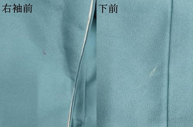 状態は接写画像のように右袖前・下前に薄い汚れがございますが