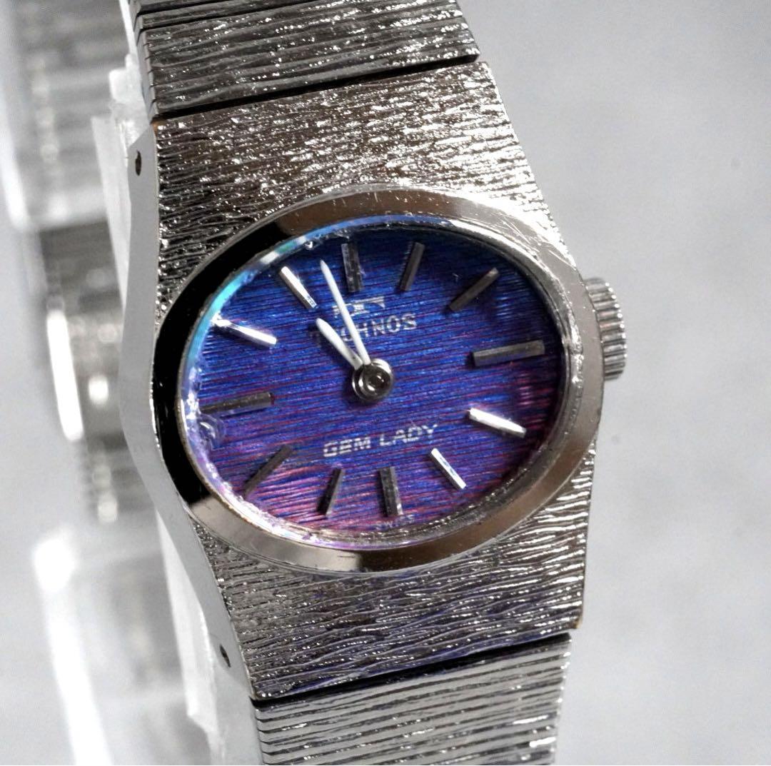 1円 スタート TECHNOS テクノス ジェムレディー ブレスレット 手巻き 腕時計 変わり文字盤 レディース antique vintage wacth 1スタ