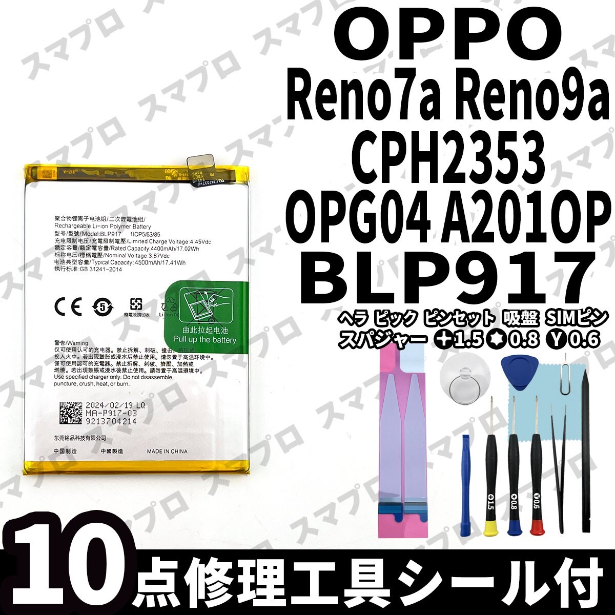 Product name: 国内即日発送!! 純正同等新品!! OPPO Reno7a Reno9a CPH2353 OPG04 A201OP バッテリー BLP917 電池パック 内蔵battery 両面テープ 修理工具