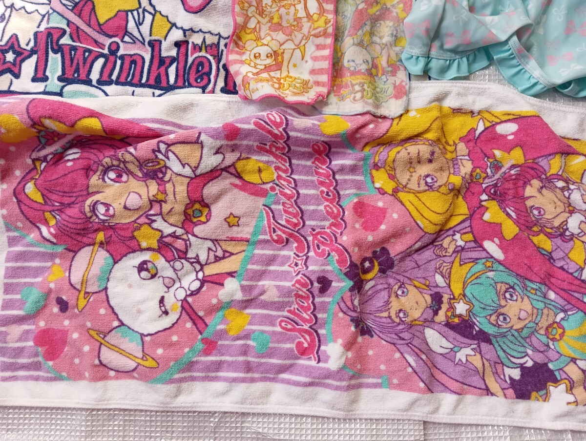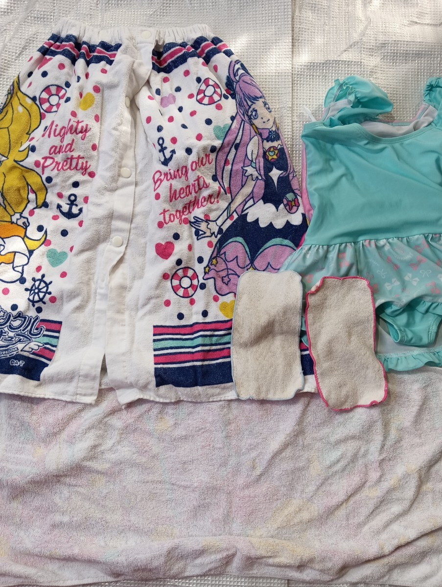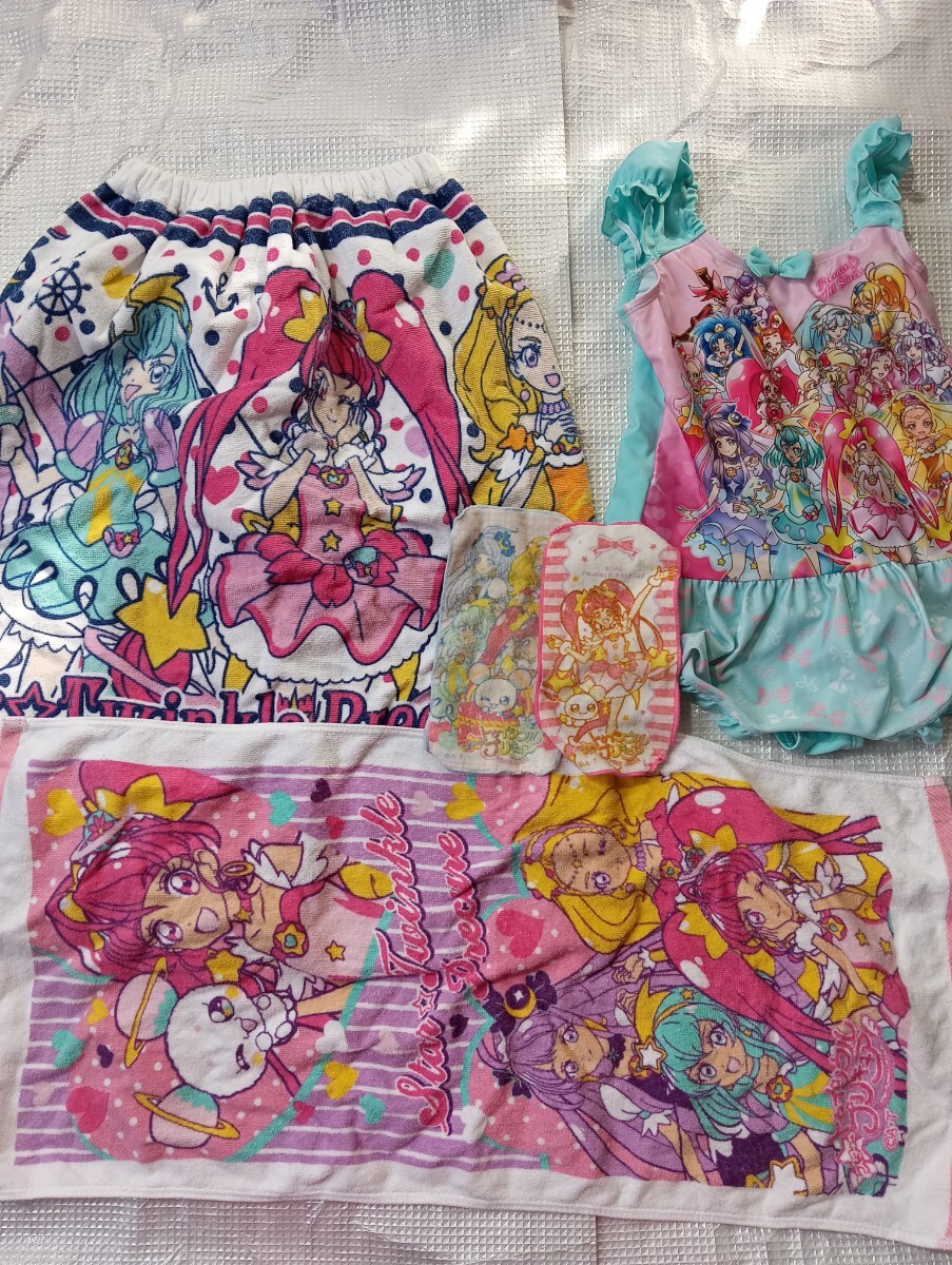 プリキュアのラップタオル・タオル類・子供用水着等のセットです。