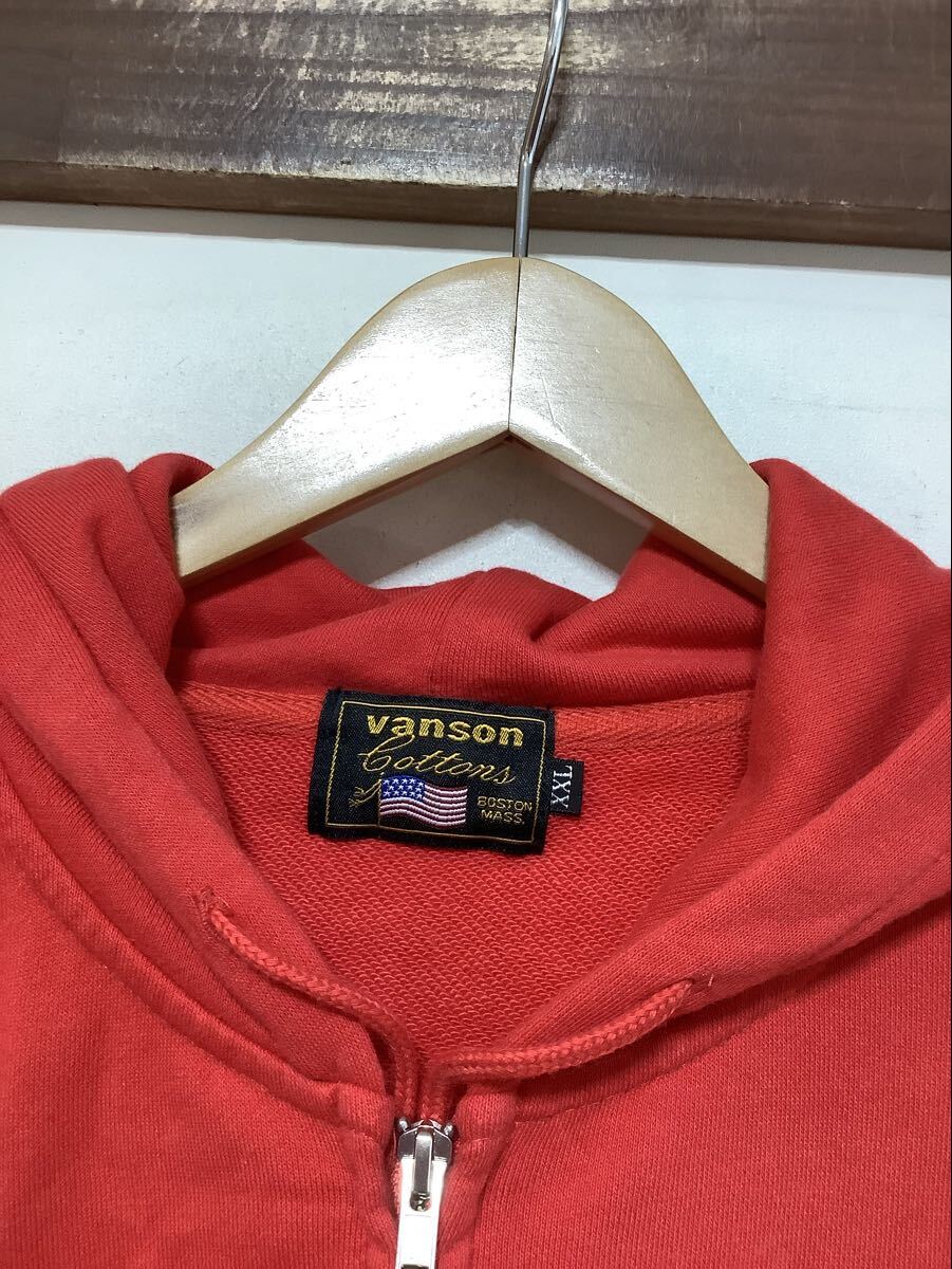 Product name: す1703 VANSON Cottons バンソン ジップアップスウェットパーカー XXL レッド 裏パイル Hoodie ロゴ刺繍