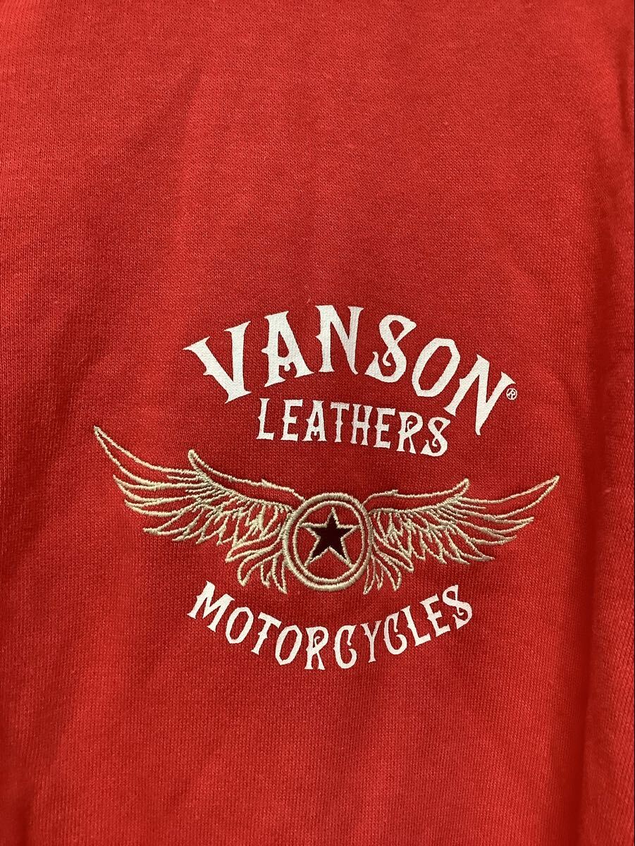 す1703 VANSON Cottons バンソン ジップアップスウェットパーカー XXL レッド 裏パイル Hoodie ロゴ刺繍