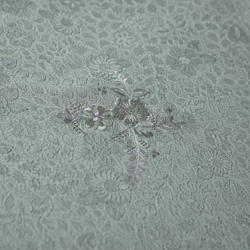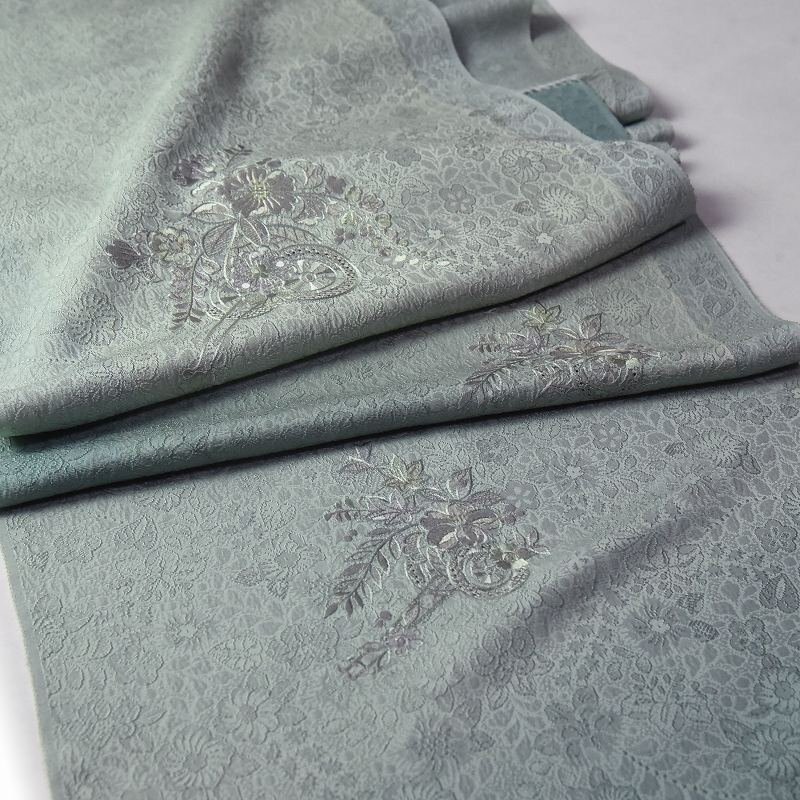 ミシン刺繍ならではの繊細な仕上がりが美しく、控えめながら華やかさを添えてくれる一枚です。あらたまった場から、ちょっとしたお呼ばれまで幅広くお使いいただけます。