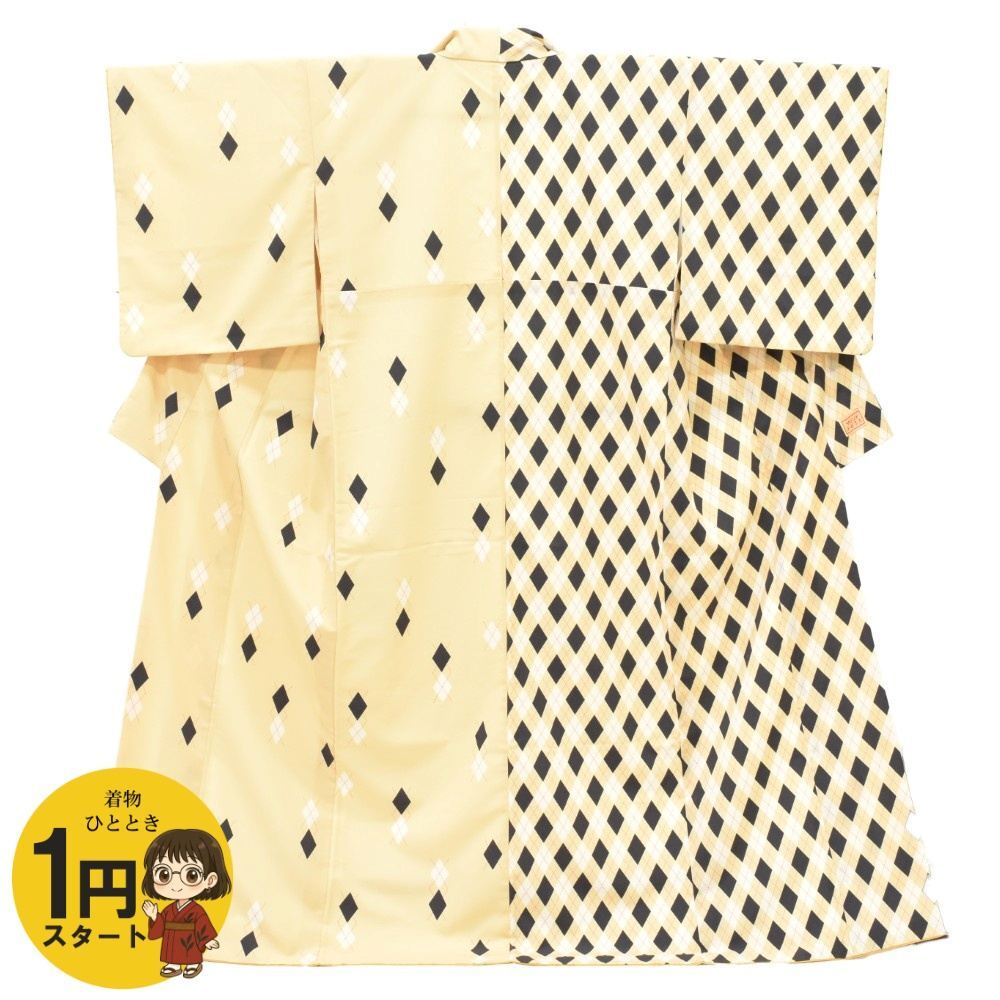 【商品説明】クリーム色にアーガイル文様が施されたモダンな着物です。