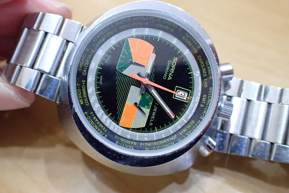 SORNA/ソルナ クロノグラフ スイス製 手巻きメンズ腕時計です。